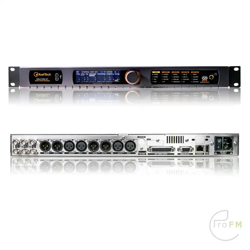 De nieuwe generatie AxelTech audio processors zet de traditie van kwaliteit, betrouwbaarheid en kosten efficiëntie voort en handhaaft de naam Falcon: gerenommeerd en gewaardeerd in de broadcast wereld over de hele wereld. Het nieuwe Falcon platform vormt een duidelijke breuk met de vorige generatie en biedt baanbrekende technologie die het gebruiksgemak, de uitzonderlijke prestaties en de ongeëvenaarde geluidskwaliteit verenigt, waardoor een modern geluid van de hoogste kwaliteit gegenereerd kan worden. De X7 FALCON biedt volledige connectiviteit met analoge en digitale audio I/O (via XLR-connectors), 2 onafhankelijke MPX-uitgangen, USB, GPI en seriële poorten. Het hardware-bypasscircuit is inbegrepen om audio-aanwezigheid en programmacontinuïteit te garanderen.