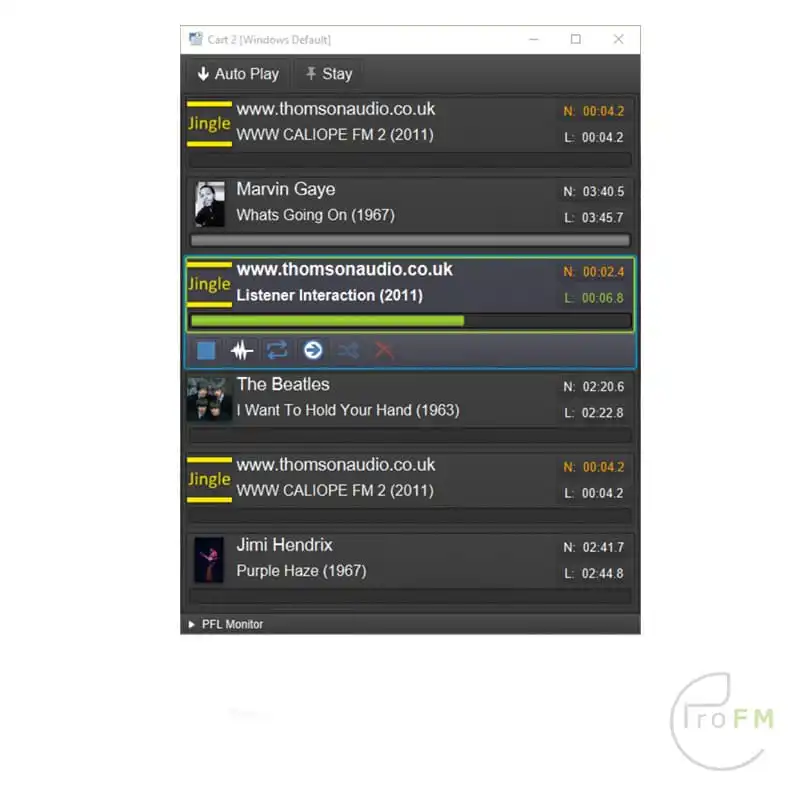 De speler speelt alle geplande items af, automatisch, semi-automatisch of handmatig. Afspeellijsten kunnen automatisch worden gegenereerd of handmatig worden samengesteld. Afspeellijsten kunnen van alles bevatten, van muziek tot vooraf opgenomen interviews. Elke DJ kan zijn of haar eigen lijst vooraf samenstellen, opslaan en laden. Afspeellijsten kunnen voor of tijdens een uitzending worden gewijzigd. Na elke wijziging herberekent de speler alle begin- en eindtijden van de items om er zeker van te zijn dat nieuwsitems en reclamespots nog steeds op de juiste tijd beginnen.