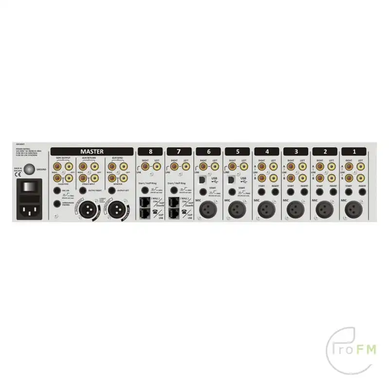 - 8 Triple-Input-kanalen – Flexibele configuratie met 6 gebalanceerde microfooningangen (XLR) en 2 stereo-lijningangen (RCA).