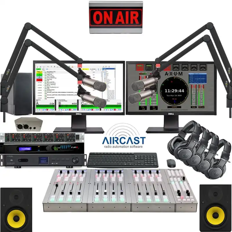 Aircast is een lichtgewicht, volledig radioautomatiseringssysteem voor Microsoft Windows. Het is gericht op kleine en middelgrote stations en voor zowel aardse uitzendingen als uitzendingen via internet. Het biedt functies die vaak alleen te vinden zijn in sommige dure professionele pakketten. Aicast is ontworpen om zo flexibel en aanpasbaar mogelijk te zijn. Het werkt met standaard PC-hardware, ondersteunt vrijwel elke geluidskaart en biedt een ongelooflijk soepele integratie met alle D&R mixers. Het geeft je faderstarts op de belangrijkste spelers en een 16-speler jingle / cart speler voor eenvoudig gebruik.Broadcast microfoons beschikbaar van Rode /Neumann en Shure Mics en M!ka Microfoonarmen
